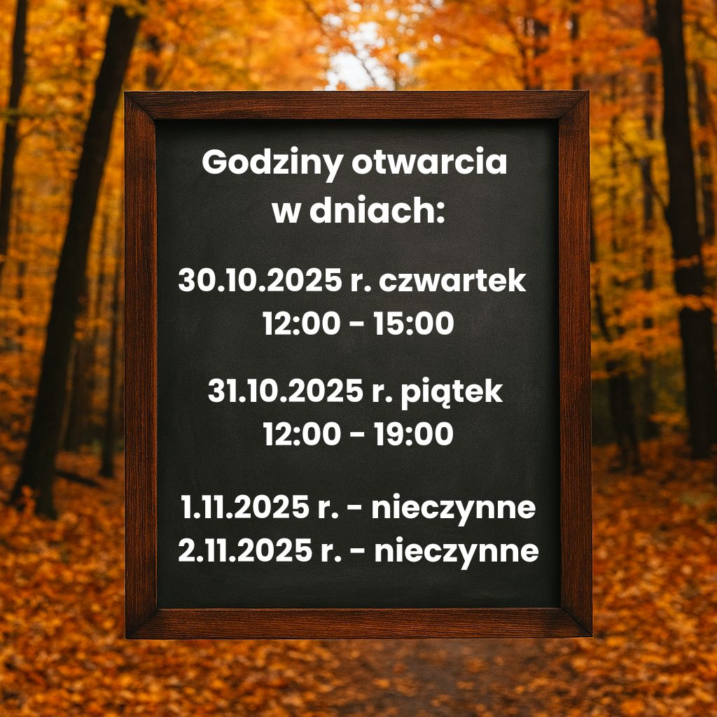 SALAZABAW Godziny otwarcia w dniach:30.10.2025 r. czwartek 12:00 – 15:0031.10.2025 r. piątek 12:00 – 19:001.11.2025 r. – nieczynne2.11.2025 r. – nieczynneZapraszamy do pasikonikowej zabawy.Lokalizacja: Piaseczno, ul. Puławska 30ACzynne codziennie od 12:00 do 19:00Telefon: 455 408 409e-mail: kontakt@sala-pasikonik.pl Lokalizacja Kontakt Regulamin urodzin Cennik Instagram Regulamin sali